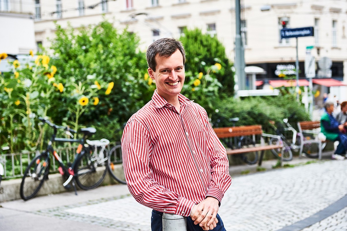 In Wien lebe ich seit fünf Jahren weil ich mich während meines Masterstudiums zur Stadtforschung in eine Kärntnerin verliebt habe. Ich mache hier mein Doktorat und unterrichte an der Universität. Das Wort Heimat existiert im Englischen nicht, ich hatte auch nie die Idee von Wurzeln, ich bin ein Wanderer. Wien ist der erste Ort an dem ich bleiben und Wurzeln schlagen möchte, es ist mehr mein Zuhause als jeder andere Ort. Das liegt wohl daran, dass ich hier etwas tue was ich gerne mache, mein Leben mit Menschen teile, die ich liebe und hier die Werte an die ich glaube, physisch erfahrbar sind. Wie die Tatsache, dass ich zu Fuß gehen kann und es viele öffentliche Plätze gibt. Auch Menschen mit wenig Macht, wie zum Beispiel Fußgänger, haben ihren Platz. Die Ungleichheit zwischen Menschen scheint mir hier geringer zu sein als in den Vereinigten Staaten. Allerdings befürchte ich, dass dieser goldene Moment endet. Und der Grund dafür ist nicht die Migration, sondern die ungeregelte Wirtschaft, dadurch werden Wohnen, Ausbildung, Gesundheit immer elitärer und ungleicher. -