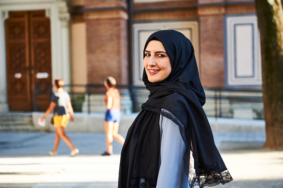 Ich bin mit meinen Eltern als Kind aus der Türkei hergekommen. Ich hatte es als Ausländerin sehr schwer in der Schule, obwohl die Lehrerinnen lieb zu mir waren und ich eine gute Schülerin war. Aber meine Mitschüler haben mich schlecht behandelt. Ich konnte die Sprache noch nicht gut und ich war sehr schüchtern. Nach der Schule habe ich eine Lehre als Einzelhandelskauffrau gemacht und mit sehr gutem Erfolg abgeschlossen. Nach drei Jahren Arbeit habe ich die Ausbildung zur Ordinationsassistentin gemacht. Damals habe ich beschlossen, das Kopftuch zu tragen und fünf Mal am Tag zu beten, weil ich nach meiner Religion leben will. Und obwohl ich in einer christlichen Schule war, waren meine Mitschüler total nett zu mir. Sie haben sogar ihre Pausenzeiten mit meinen Betzeiten abgesprochen. Das hat mich sehr gefreut. Doch die Arbeitssuche danach war hart. Ich habe meine Bewerbungen immer ohne Foto abgeschickt und bin wegen meiner guten Zeugnisse oft zu Vorstellungsgesprächen eingeladen worden, aber kaum habe ich gesagt, dass ich mit Kopftuch arbeiten will, war es auch schon vorbei und ich habe eine Absage bekommen. Ich habe oft geweint in der Zeit, aber ich habe es gegen den Rat meiner Mutter durchgezogen. In unserer Religion ist Geduld und Hoffnung wichtig, daran habe ich fest gehalten. Nach eineinhalb Jahren Suche habe ich beim Roten Kreuz eine Stelle als medizinische Hilfskraft bekommen. Ich bin so glücklich mit meiner Arbeit. Ich liebe Wien und fühle mich hier zuhause. Ich freue mich auch, wenn Türken unsere Stadt besuchen und sich für Wien interessieren. Ich bin sehr menschenbezogen, schon ein Lächeln freut mich. Ich fühle mich da zuhause, wo meine Familie ist und wo ich gute Freunde und Arbeitskollegen habe. Ich mag die Kirche hier im Siebenten sehr, ich hätte auch gerne eine schöne Moschee die zentral gelegen ist.