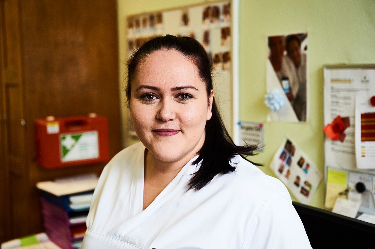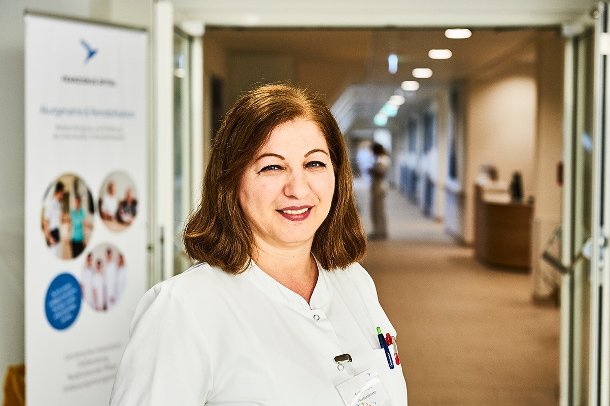 Ich bin Albanerin aus Mazedonien. Ich stamme aus einer sehr sozialen Familie, meine Mutter hat oft Waisenkindern zu Essen gegeben. In unserer Kultur ist es auch selbstverständlich, die Großeltern bis zu ihrem Tod zuhause zu pflegen. Vielleicht hatte ich deswegen schon als Kind den Traum, Ärztin zu werden. Leider hat es zu wenige Studienplätze gegeben, es ist schon schwer genug gewesen, ohne Protektion in die Krankenpflegeschule zu kommen. Nach der Ausbildung hat es daheim keine Arbeit gegeben und so bin ich mit 19 Jahren nach Wien gegangen. Das ist am Anfang sehr hart gewesen. Ich bin als Fremde gekommen und war verunsichert. Ich gehöre dem islamischen Glauben an, komme aus einer anderen Kultur und einer anderen Sprache, aber als ich die Klosterschwestern kennengelernt habe, war mir sofort klar, dass wir die gleichen Werte teilen: Respekt, sich und Anderen gegenüber, Wertschätzung, gewaltfreie Kommunikation. Diese Werte sind in unserer Arbeit sehr präsent. Ich bin froh in Wien zu leben und arbeite seit 27 Jahren im Franziskus Spital. Mir gefällt die Vielfalt der Nationen und Religionen im Spital. Ich muss nicht um die Welt reisen, ich habe die Welt hier um mich herum. Ich dolmetsche auch viel auf der Station. Wenn der Patient auch nur ein paar Worte in seiner Muttersprache hört, wirkt das sofort beruhigend. Nicht selten habe ich dann Tränen der Erleichterung gesehen. Ich bin verheiratet und wir haben zwei Kinder. Beide haben maturiert und mein Sohn studiert Medizin. Ich bin stolz auf sie und froh, dass sie in Österreich leben und mehr Möglichkeiten haben sich zu verwirklichen, als ich es gehabt habe.