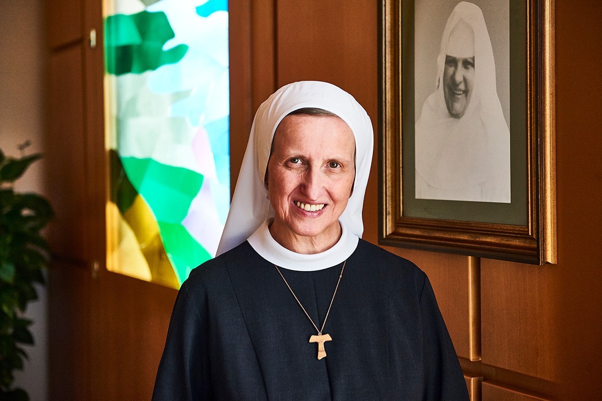 Ich stamme aus Niederösterreich und bin mit fünf Geschwistern auf einem Bauernhof aufgewachsen. Als junges Mädchen wollte ich zu meinem Lieblingsbruder nach Tirol ziehen und dort arbeiten. Er ist plötzlich verstorben und mein Lebensplan war dahin. Ich bin in ein tiefes Loch gefallen. 1977 habe ich mit 19 Jahren als Raumpflegerin im Hartmannspital zu arbeiten begonnen und bin bald in den Orden eingetreten. Als mir bewusst geworden ist, auf wie vieles ich verzichte, habe ich viel geweint und dann realisiert, dass ich die Wahl habe auszutreten oder positiv weiter zu machen. Nach der dunklen Zeit bin ich in eine sehr schöne innere Landschaft gekommen. Steine sind nicht nur hinderlich, sie festigen auch und geben Halt. Erfüllung wird in unserer Gesellschaft oft mit Reichtum und Erfolg gleichgesetzt. Das setzt viele Menschen unter Druck. Doch im geistlichen Sinn bedeutet Selbstverwirklichung, bei sich selber anzukommen. Ich muss nichts erreichen, denn im geistlichen Leben geht es nicht um Leis-tung, sondern um Sein. In meinem Leben haben Freude, Schmerz, Glück und Humor ihren Platz und ich darf ganz sein, weil ich mich von Gott angenommen und geliebt fühle. Das gibt mir die Kraft, den Menschen, meiner Ordensgemeinschaft und dem Krankenhaus zu dienen. Der Gott der Liebe, der uns allen das Leben geschenkt hat, hat uns nicht in Konfessionen, Kulturen und Herkunft eingeteilt. Wir sind Brüder und Schwestern, das ist dem Heiligen Franziskus so wichtig gewesen. Da schließt sich der Kreis. Unser Motto ist: Achtsam dem Leben begegnen. Wir gehören alle zur Schöpfung und gehen gemeinsam einen Weg, auch in unserem Haus, dem Franziskus Spital.