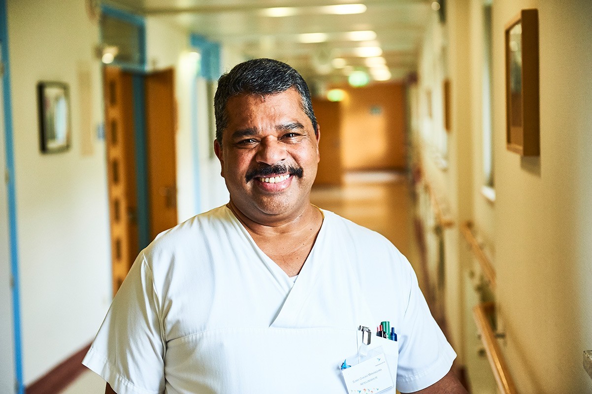 Ich komme aus Kerala in Indien und bin 1993 nach Österreich über siedelt. Im Franziskus Spital habe ich sofort eine Stelle bekommen. Am Anfang habe ich großes Heimweh gehabt. Meine Frau und ich haben vorgehabt, nur ein paar Jahre zu bleiben, aber dann sind die Kinder auf die Welt gekommen und langsam sind wir heimisch geworden. Wir wohnen in einer Reihenhaussiedlung mit 15 österreichischen Familien und sind wie eine große Familie. Meine Tochter und ich sind im Pfarrge-meinderat. Heute fühle ich mich mehr als Österreicher denn als Inder, aber ich achte auf meine Wurzeln und organisiere das „Kerala Kulturprogramm“. Das Wichtigste in einem neuen Land ist die Sprache, die Akzeptanz der neuen Kultur und das Mitmachen. Dadurch kann ich mich zuhause fühlen. Im Spital zu arbeiten ist eine heilige Arbeit. Einmal habe ich eine Patientin ins Zimmer gebracht, die große Angst vor ihrer Operation gehabt hat. Ich habe ihr alles gezeigt und ein biss-chen mit ihr ge -redet und dann hat sie mir gesagt: „Meine halbe Krankheit ist schon weg.“ Das werde ich nie vergessen. Ich bin nicht in Indien gewesen, um meine Eltern zu pflegen als sie alt und krank waren. Das verstößt gegen unsere Sitten. Durch meine Arbeit mit alten Menschen im Franziskus Spital, kann ich das ein bisschen wettmachen.