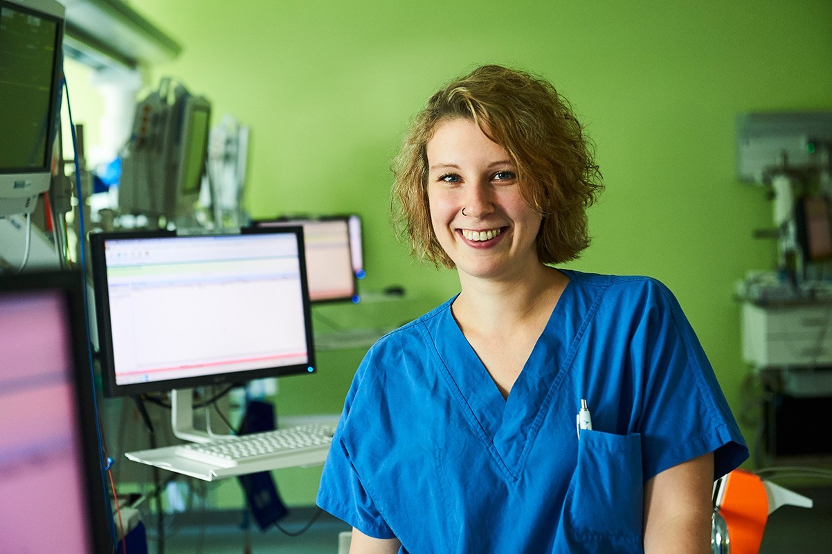 Ich bin in Wien aufgewachsen und habe als Jugendliche erlebt, wie meine Großmutter fünf Jahre lang meinen Großvater gepflegt hat, auch als er schon sehr dement war und uns nicht mehr erkannt hat. Dank ihr hat alles gut geklappt, aber ich habe mich gefragt, was ist, wenn es keine solche Großmutter gibt? Dadurch habe ich begonnen mich für den Pflegeberuf zu interessieren, sowohl für die pflegerische wie auch für die medizinische Seite. 2015 habe ich die Ausbildung zur Krankenpflegerin begonnen. Mein letztes Praktikum war 2018 in der Anästhesiepflege im Franziskus Spital. Meine Chefin hat mich gefragt, ob ich bleiben möchte und ich habe mich gleich beworben, weil ich unser Team so mag. Wenn ein Patient kommt und aufgeregt ist, kann ich ihm mit Humor ein bisschen die Angst nehmen. Wenn er sich vor der Anästhesie fürchtet, erkläre ich ihm den Vorgang und beruhige ihn. Für mich geht es um den Patienten als ganzen, nicht nur um den Eingriff, der ihm bevorsteht. Dieses Gefühl, Vertrauen und Geborgenheit zu geben, ist mir wichtig. Wenn der Patient im Operationsaal ist und du streichst nur kurz über seinen Arm, macht das schon einen Unterschied. Durch meine Arbeit habe ich mehr Hintergrundwissen über die Abläufe im Organismus, das macht mich hinsichtlich meiner Eltern und Großeltern nachdenklich. Auf der anderen Seite ge -nieße ich mein Leben mehr und bin dankbar, dass es uns allen gut geht. Geld haben ist das eine, aber Gesundheit ist so viel mehr wert.